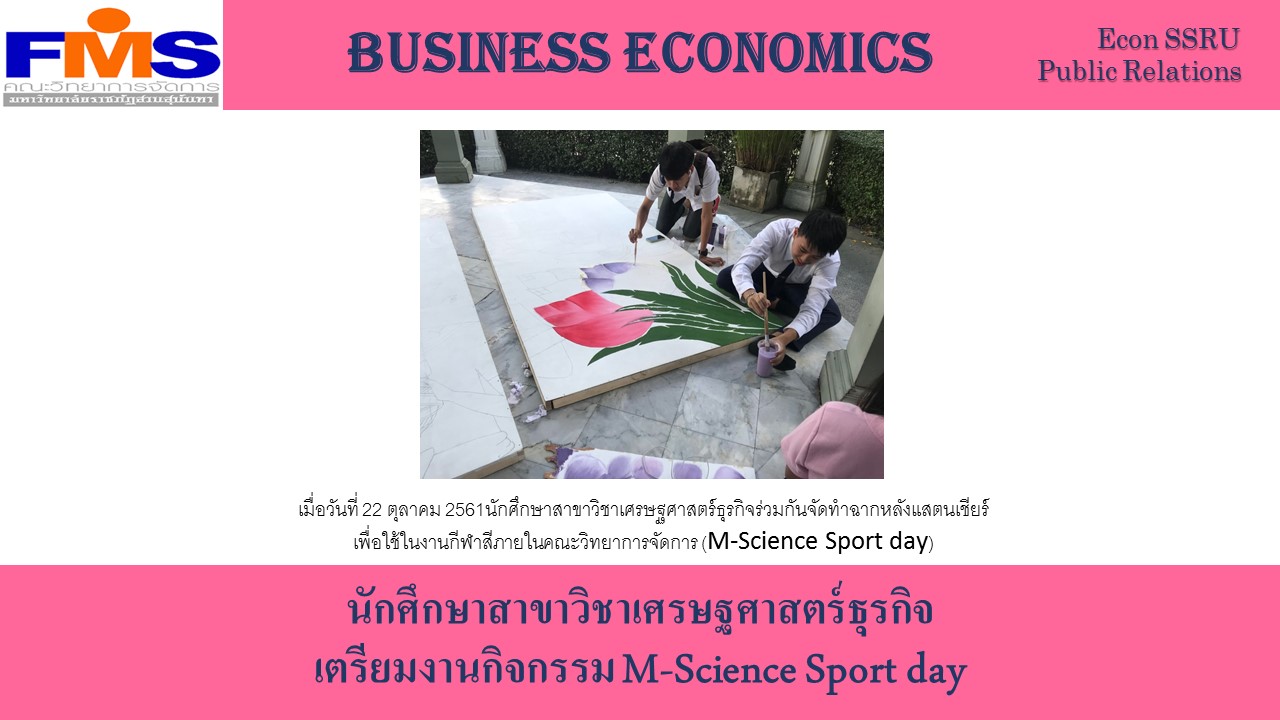 เมื่อวันที่ 22 ตุลาคม 2561นักศึกษาสาขาวิชาเศรษฐศาสตร์ธุรกิจร่วมกันจัดทำฉากหลังแสตนเชียร์ เพื่อใช้ในงานกีฬาสีภายในคณะวิทยาการจัดการ (M-Science Sport Day)